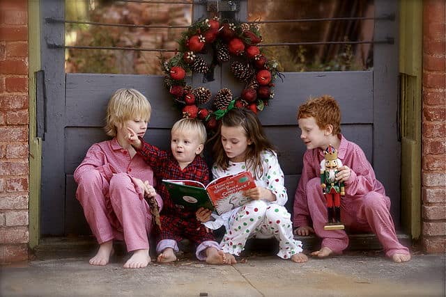 Children reading The Grinch by Dr. Seuss
