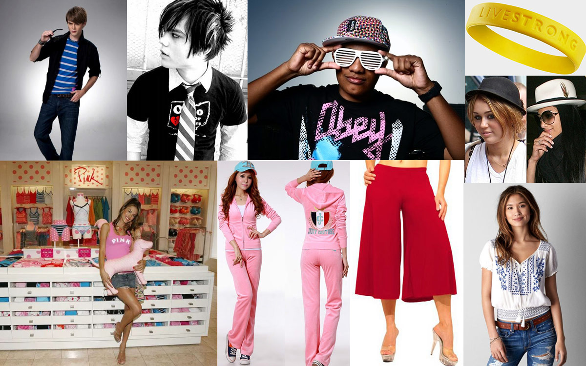 Various ‘hip’ boys and girls styles that you might see in school of the last decade