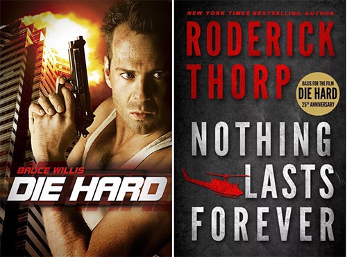 Die Hard movie poster (left), Nothing Lasts Forever book cover (right)