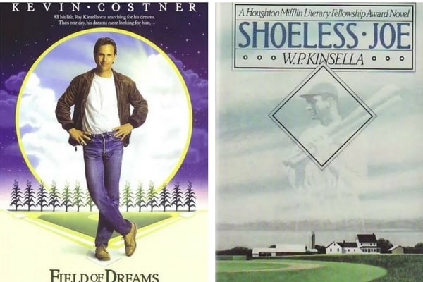Field of Dreams movie poster (left), Shoeless Joe book cover (right)
