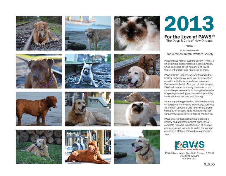 All proceeds from this heartwarming calendar go toward the Plaquemines Animal Welfare Society.