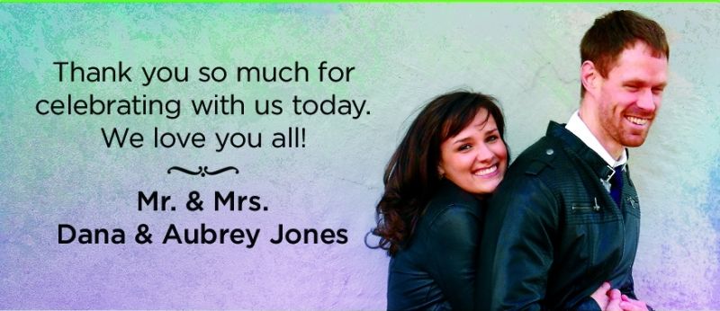 There's nothing more romantic than a photo of lovebirds perched together as they begin their new life together. This couple combined mini business cards and a classic, timeless image to create tangible thank you notes and a special keepsake for friends and family.