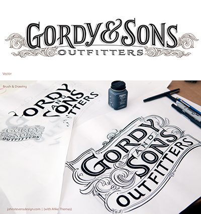 Decorative hand lettered company logo for Gordy and Sons Outfitters