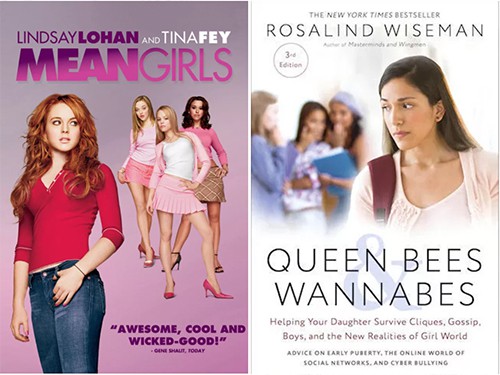 Mean Girls movie poster (left), Queen Bees Wannabes book cover (right)