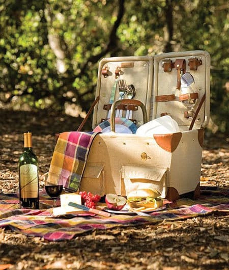 Cheese and wine picnic spread in the park. Photo courtesy of Picnic Time.