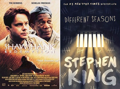 Shawshank Redemption movie poster (left), Different Seasons book cover (right)