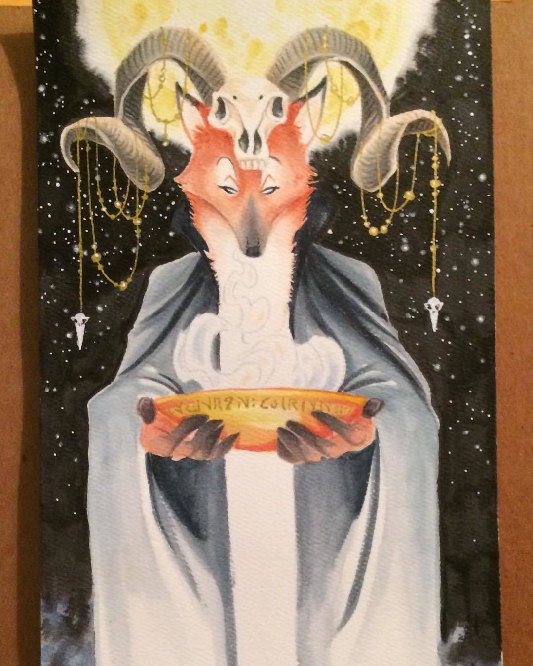 Mage fox watercolor illustration