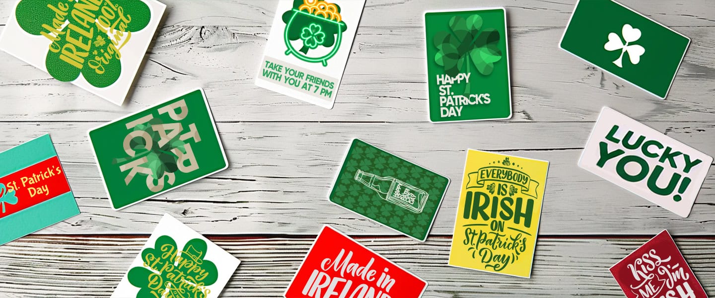 Wer freut sich nicht über ein kleines Giveaway? St. Patrick’s Day-Sticker sind ein günstiger und spaßiger Weg, Ihre Marke weiterzugeben – z. B. an der Kasse oder als Beigabe.