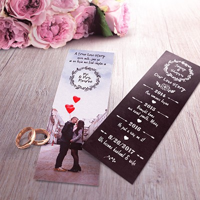 Mini love story bookmark with wedding rings